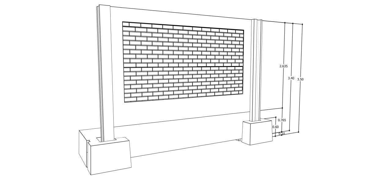 نمای ظاهری این دیوار به شکل طرح آجر (Brick Pattern) اجرا شده است.